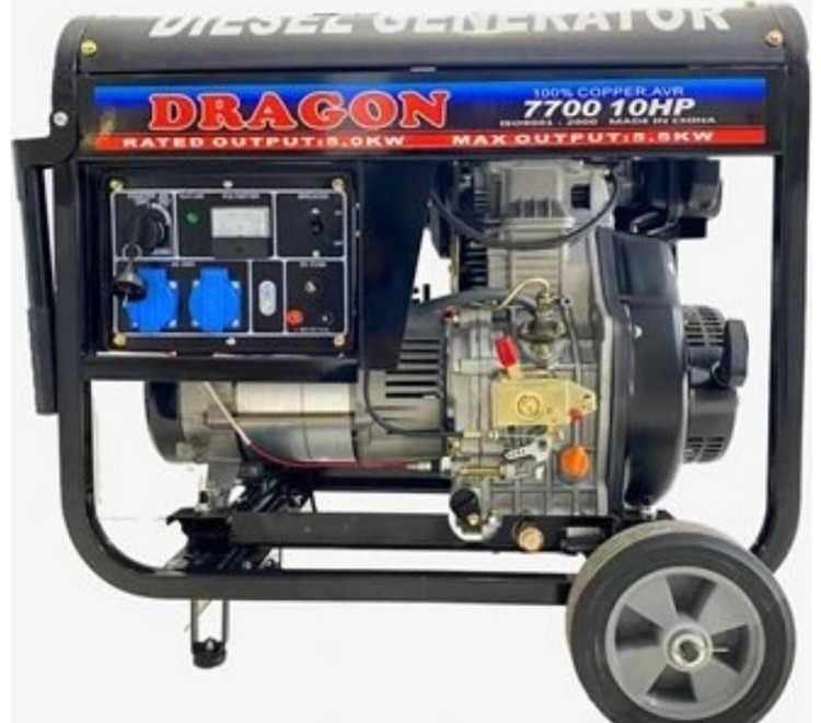 موتور برق دیزلی دراگون، موتور برق تک سیلندر، 4 زمانه با قدرت موتور 10 اسب بخار می باشد. توان دائم 5.5 کیلووات و سیم پیچی مس، از برندهای خوب موتوربرق می باشد.
