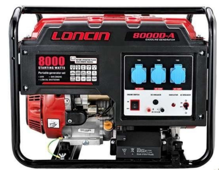 موتور برق بنزینی لانسین LC8000-DAS دارای سیستم شروع به کار هندلی و استارتی و دارای موتور تک سیلندر هوا خنک و چهار زمانه است. این موتور برق بنزینی صدایی معادل ۷۶ دسی بل دارد که با توجه به توان موتوری آن میزان قابل قبول و مناسبی می باشد. موتور برق بنزینی LONCIN مدل LC8000 DAS با موتور چینی و ولتاژ ۲۲۰ ولتی از حجم موتور ۴۲۰ سی سی و مصرف سوخت ۲.۲ لیتر بر ساعت برخوردار است.