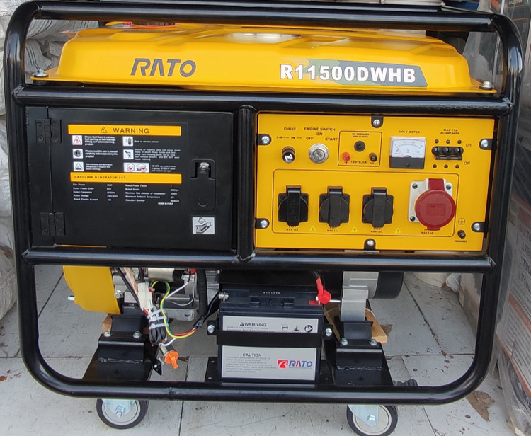 موتور برق ۱۰ کیلووات راتو مدل : R۱۱۵۰۰DWHB یک دیگر از موتور برق های برند راتو است که چون از کیفیت بالایی برخوردار است توانسته طرفداران زیادی را داشته باشد . موتور برق ۱۰ کیلووات برند راتو یک موتور برق با قدرت ۱۸ اسب بخار دارد که می تواند در حالت ماکسیم ۱۰ کیلووات و در حالت دائم ۹.۵ کیلووات خروجی داشته باشد . حجم باگ این موتور ۳۰ لیتر بوده و دارای سنسور روغن است و مصرف بنزین این موتور برق در هر ساعت ۱ لیتر است .